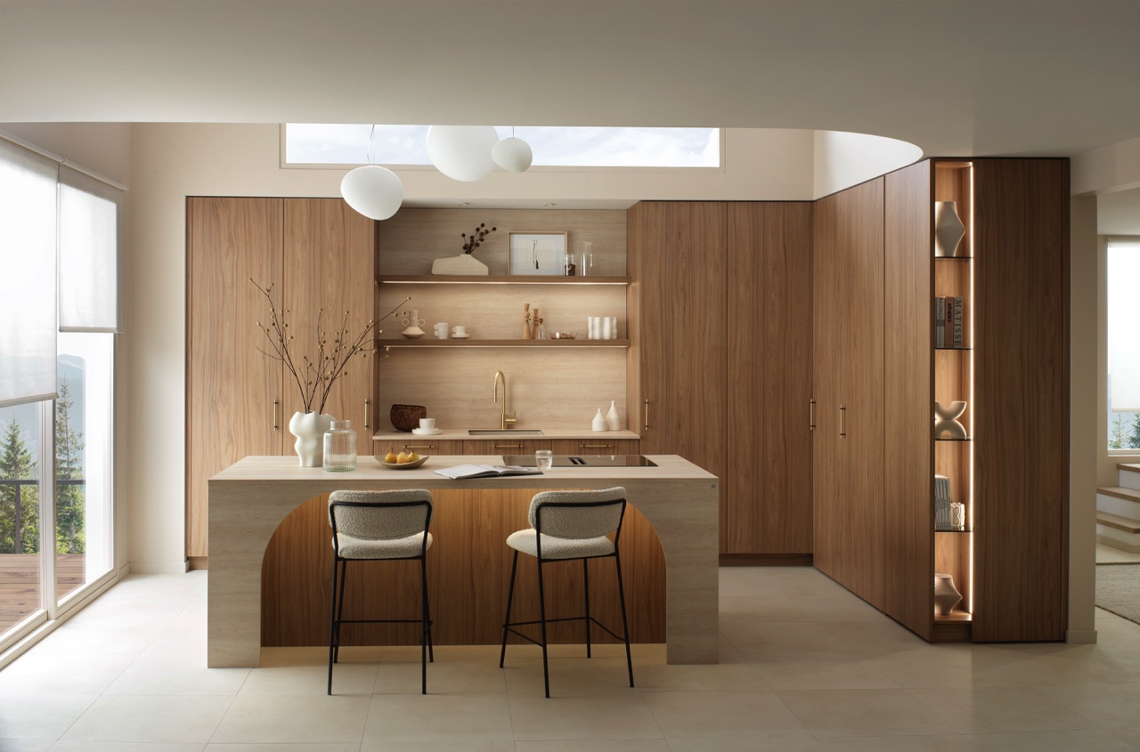 Immer mehr Küchen verabschieden sich von strengen Linien und setzen auf Rundungen und sanfte Formen. Gerundete Fronten, abgerundete Inseln oder weich geformte Ecklösungen mit feinen Rillen bringen Ruhe und Eleganz in den Raum. Sie wirken nicht nur ästhetisch, sondern auch haptisch angenehm und unterstreichen den gemütlichen Charakter. Rillenfronten an Ecken oder auf einzelnen Flächen setzen dezente Akzente, spielen mit Licht und Schatten und verleihen der Küche Tiefe.