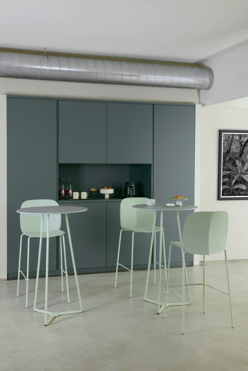 - Oft gibt es auf der Arbeitsfläche nicht genug Platz für alle nötigen Geräte und Utensilien. Deshalb ist es eine super Idee, eine extra Kaffeebar zu schaffen. Dafür eignet sich ein deckenhoher Schrank. Die Regale und das ausziehbare Lift-Tablar sind die perfekte Stauraumlösung. Praktisch ist es, dass die Maschine einfach wieder hinter den geschlossenen Schranktüren verschwinden kann, von Leicht.