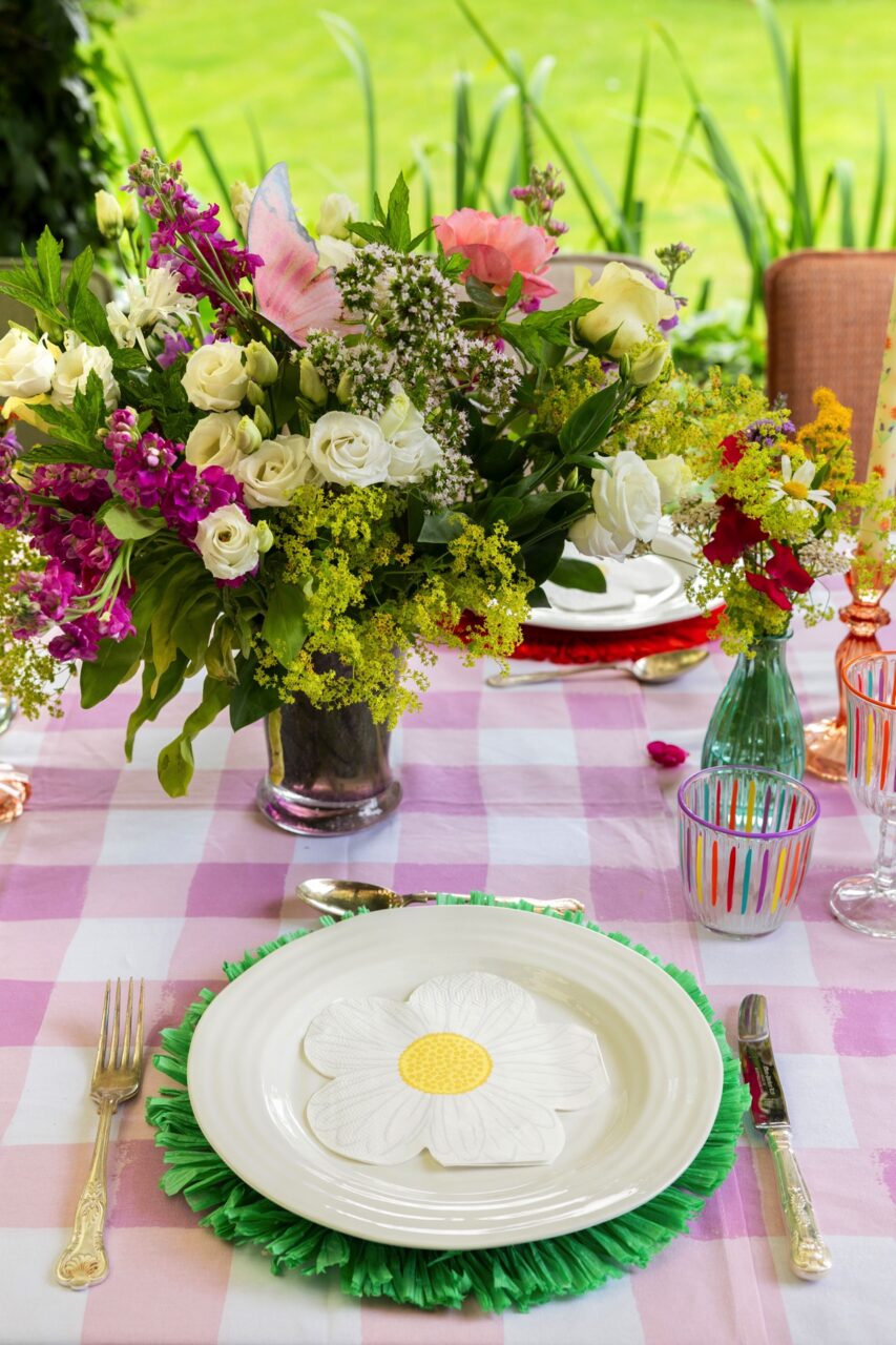 - Blumige Akzente, egal wo man auf diesem Tisch hinschaut. Süß sind die Papierservietten „White Daisy“ von Talking Tables. Sie harmonieren toll zu ganz schlichtem Geschirr, aber auch zu bunten Tellern.