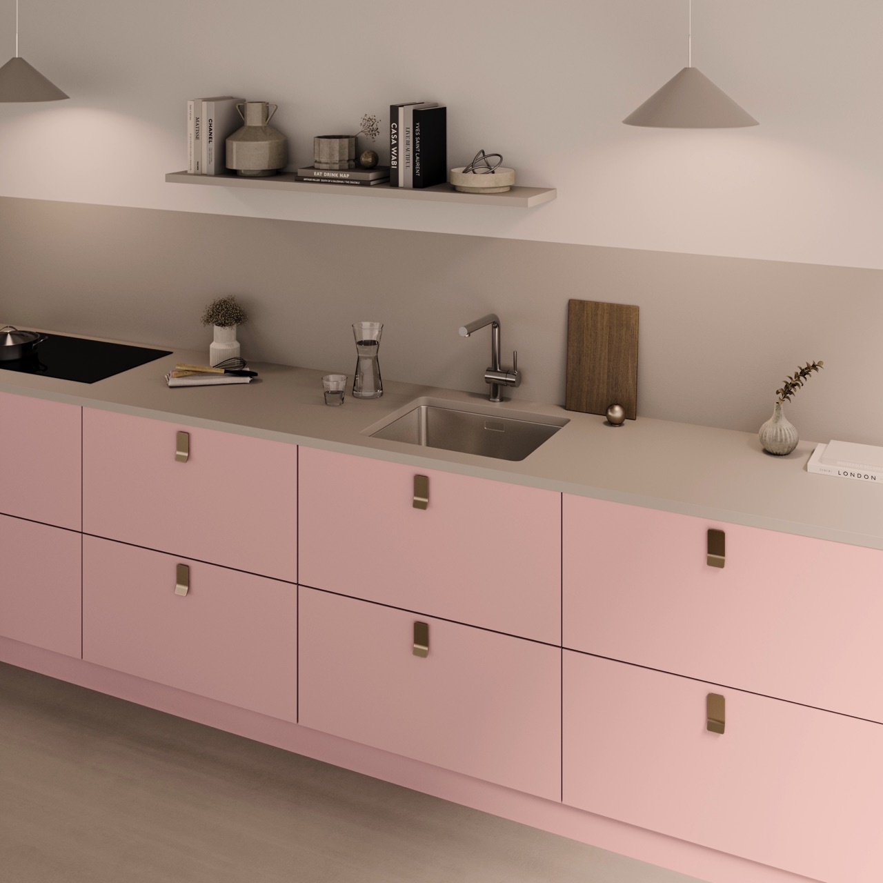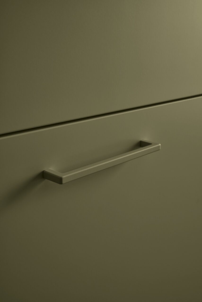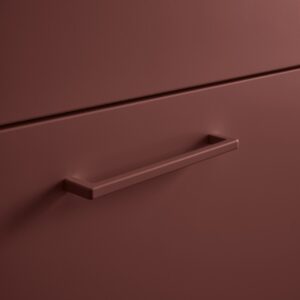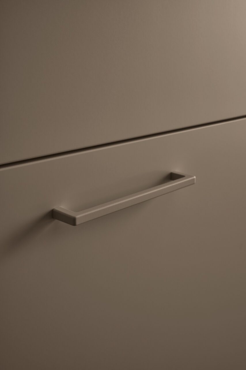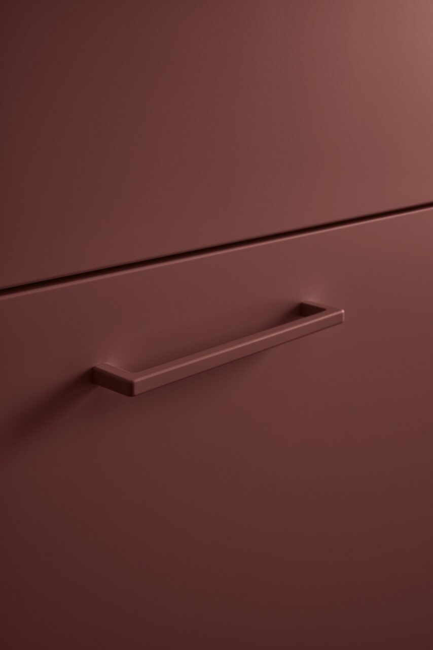 - Richtig fein wirken die Griffe in matter Optik. Sie integrieren sich monochrom in die Fronten im jeweils gleichen Farbton. Es gibt die Griffe in 20 Mattlack-Tönen, unter anderem in „Hennarot“, „Magma“ und „Olive“, von Nolte Küchen.