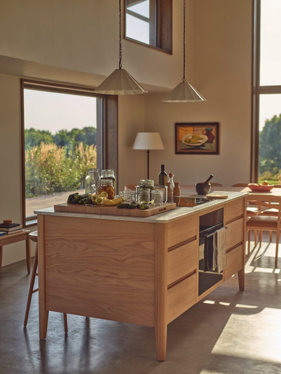 - Weich geschwungene Kücheninsel mit heller Steinplatte werden zu einem Design mit Wohlfühlcharakter. Küche „Borough“ ist eine Neuinterpretation einer ländlichen Küche von Neptune. Alle Stücke können einzeln als Modul verwendet werden oder lassen sich zu einer kompletten Küche zusammenstellen. Das Modell vereint Einflüsse des skandinavischen Mid-Century-Designs mit britischem Stilgefühl. Hergestellt ist alles aus massiver Eiche und Tulipwood. Die klaren Linien werden durch abgerundete Ecken sanft gebrochen. Das verleiht der Kollektion eine moderne Leichtigkeit.