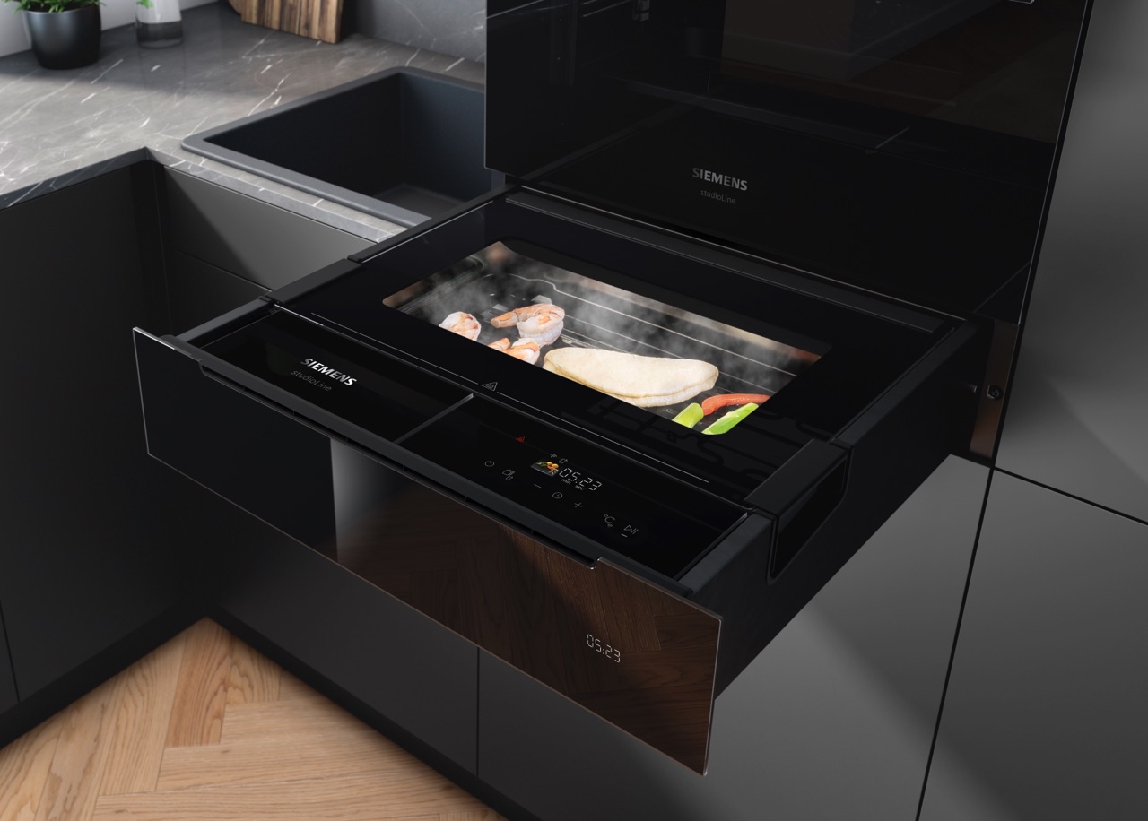 - Siemens kombiniert auf minimalem Raum intelligente Technologie mit Design für mehr kulinarische Vielfalt. Die grifflose Schublade aus schwarzem Glas kann entweder mit einem Ofen kombiniert oder einzeln platziert werden. Dadurch erweist sie sich als große Unterstützung für alle, die gesund kochen möchten, ohne viel Platz dafür zur Verfügung zu haben. Über das in der Schublade integrierte Farb-Touch-Display können Temperatur und Zeit präzise von Hand eingestellt werden. Auch stehen zehn Automatikprogramme direkt am Gerät und 20 weitere über die Siemens Home Appliances App zur Verfügung.