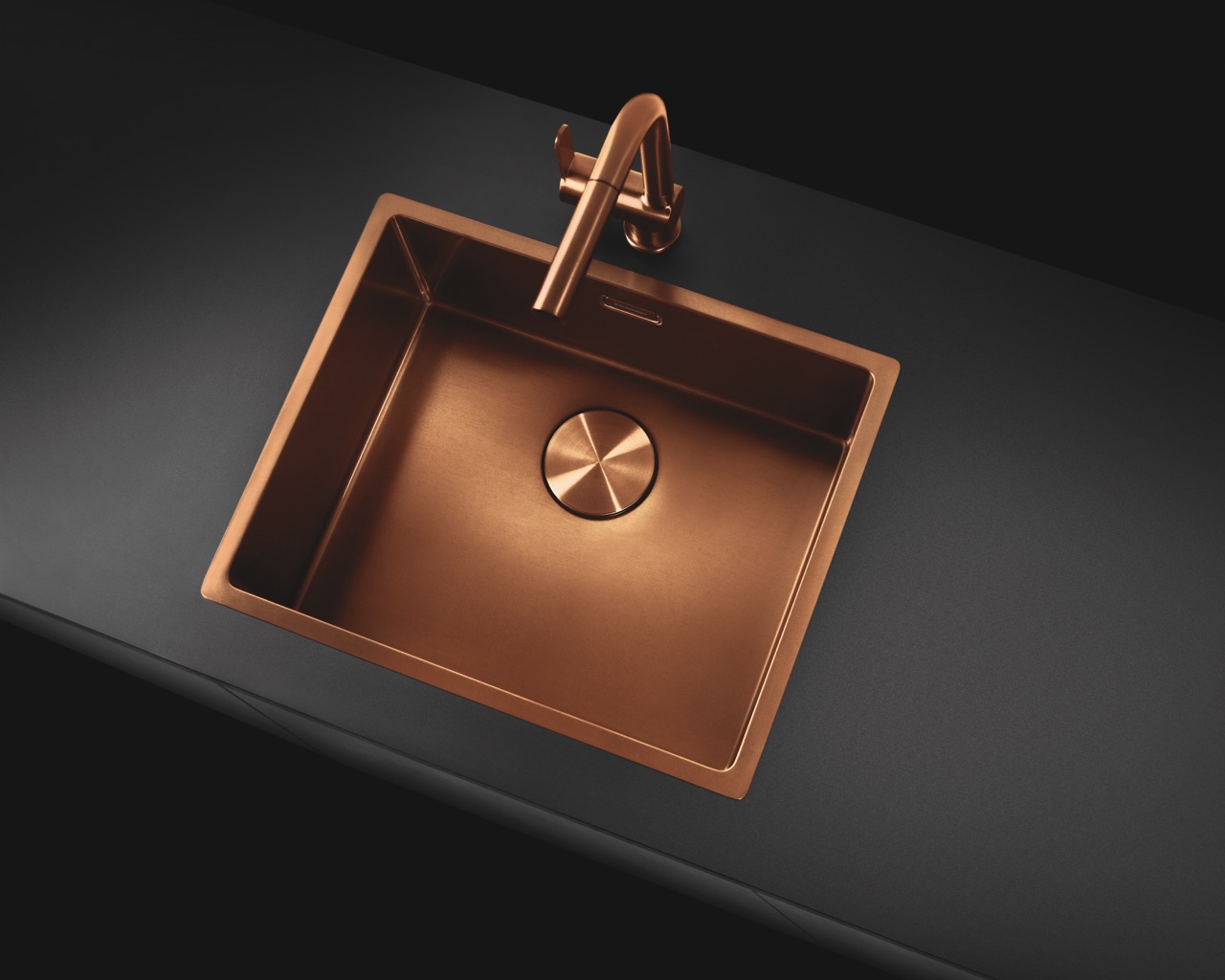 - Spüle „Lago“ von Blaupunkt ist PVD-beschichtet, dazu harmoniert Armatur „Liro“. Zusammen bilden sie ein Highlight im Bereich Spülendesign. Das Material bietet eine hohe Kratzfestigkeit und Resistenz gegen Flecken. Die Farbe ist beständig und behält ihren Glanz. In „Kupfer“ ist es eine schöne Lösung für alle, die ebenso viel Wert auf Ästhetik wie auf Alltagstauglichkeit legen.