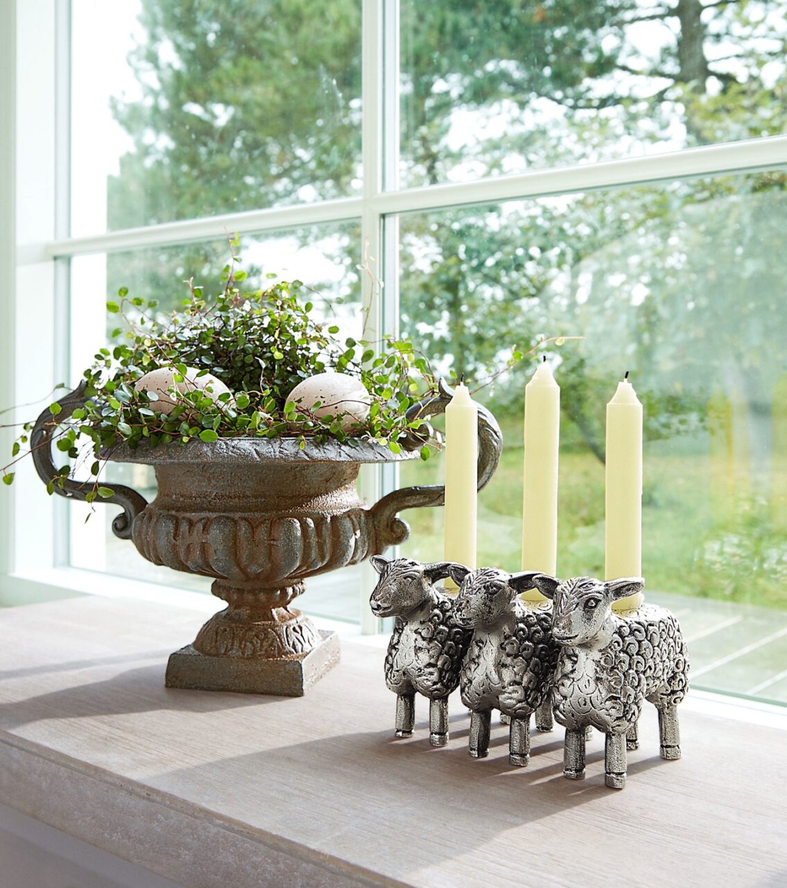 - Wie niedlich sich die Schafe auf die Fensterbank geschlichen haben in Form des Kerzenhalters Séverac aus Aluguss. Seine lebendige Ornamentstruktur lässt die Oberfläche funkeln und das Kerzenlicht noch strahlender erscheinen. Ob auf dem gedeckten Tisch, im Fenster oder auf einer Kommode, die Deko sieht einfach charmant aus, ca. 50 Euro, von Loberon.
