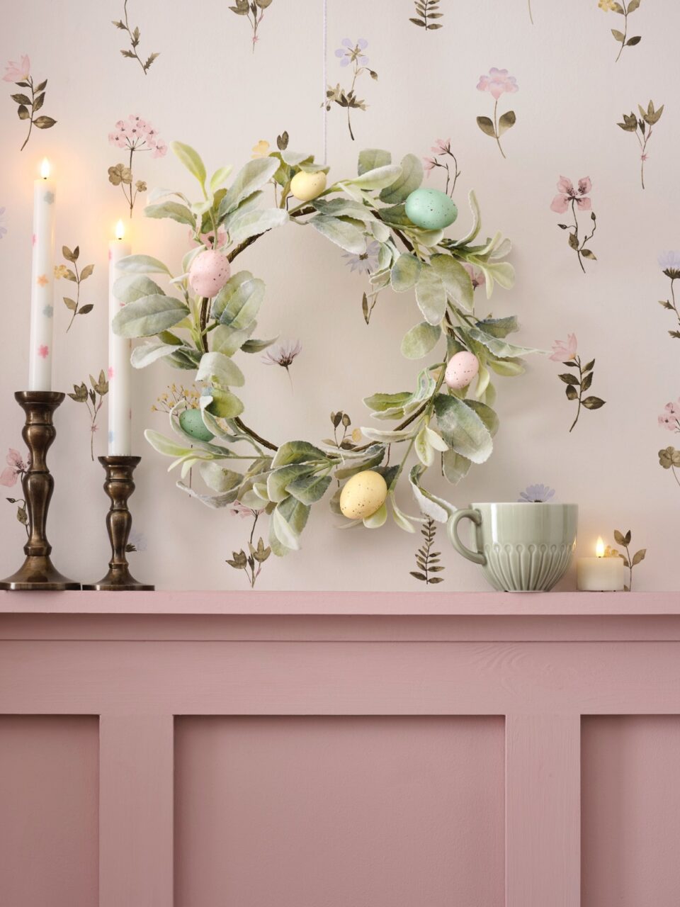 - Eine romantische Oster-Stimmung versprüht der niedliche Kranz in zartem Grün mit Eiern in Pastelltönen. Er hat einen Durchmesser von 40 Zentimetern, von Lights4fun. Attraktiv sieht er über einem Sideboard aus, aber auch am Fenster oder der Tür.