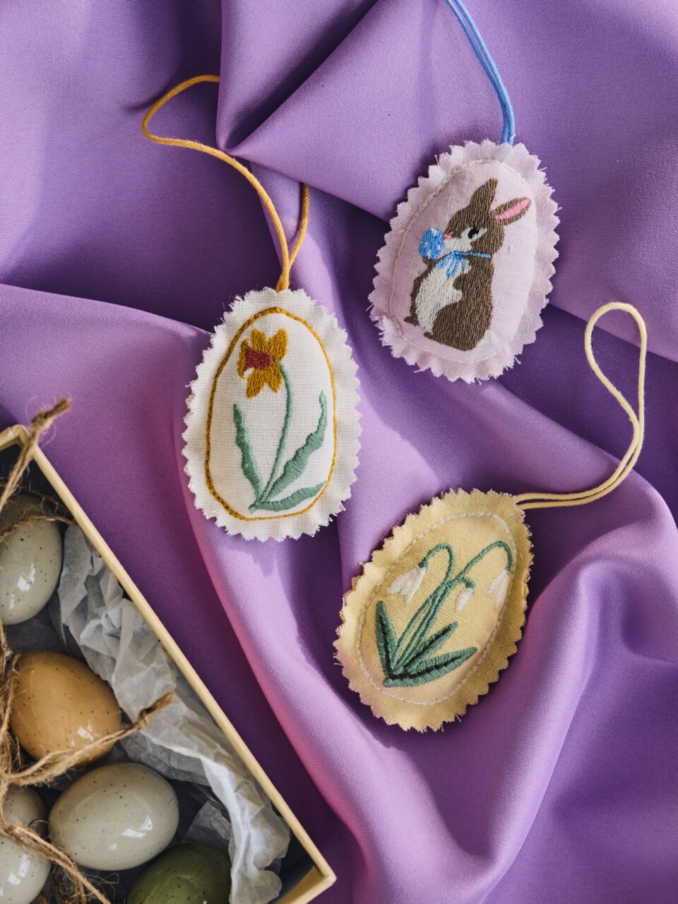 - Wie selbstgemacht sehen die weißen Anhänger aus Stoff aus. Sie veredeln filigrane Zweige mit ihren liebevollen Motiven. Eine Besonderheit der Stoffeier sind die gezackten Kanten, von Søstrene Grene.