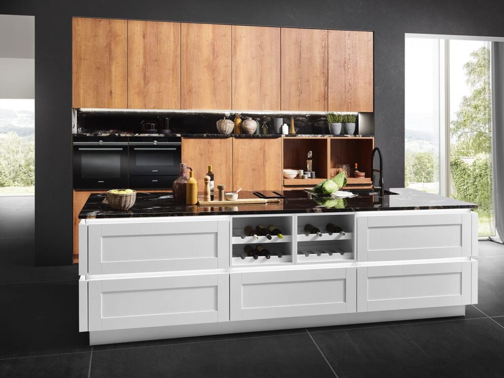 - Sehr wohnlich wirkt das Zusammenspiel der Fronten Tessina Oak Cognac mit der weiß lackierten Echholzfront Gent. Foto: Beckermann
