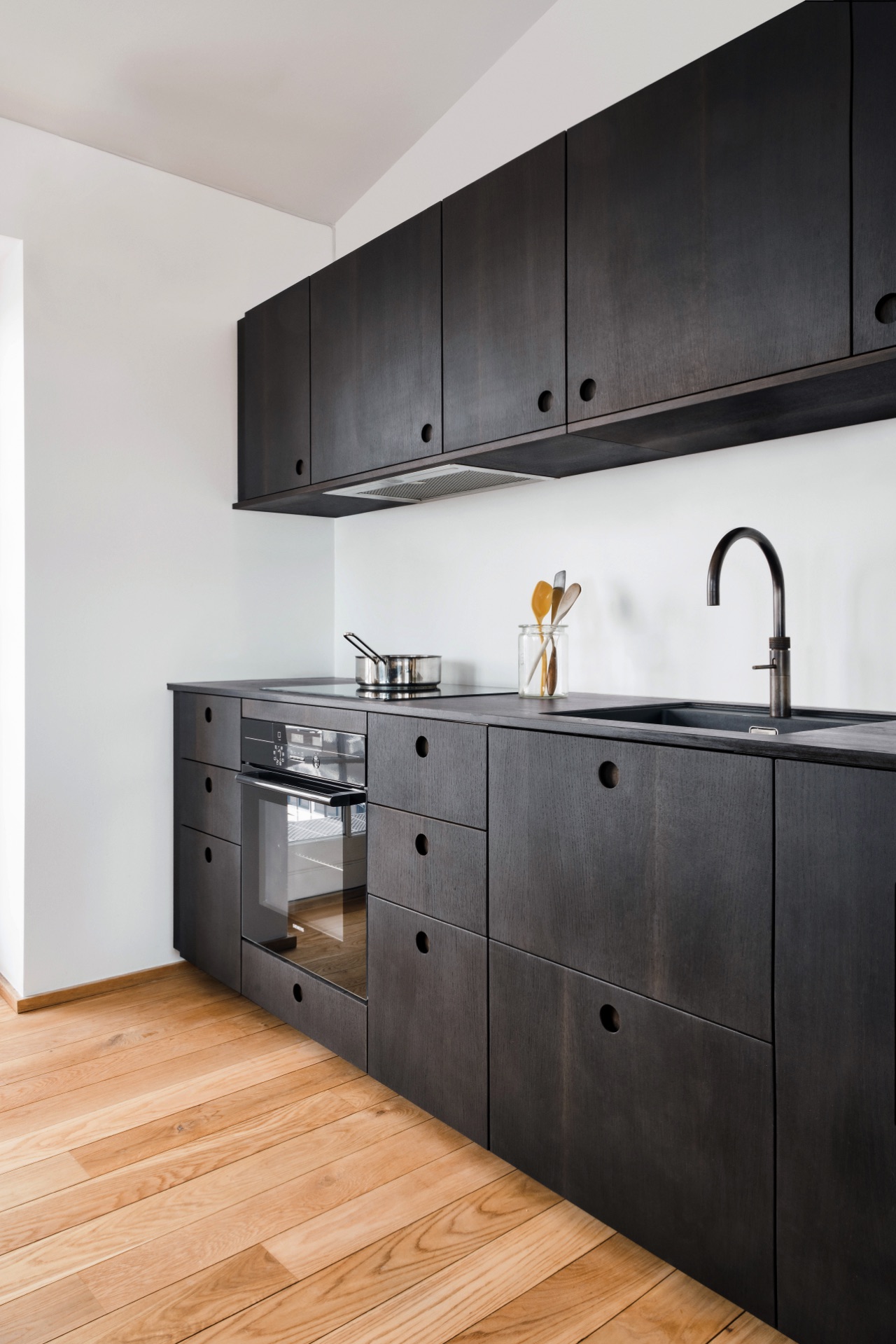 Die Kollektion Basis ist inspiriert von den skandinavischen Architekturküchen der 1960er Jahre aber konzipiert für die Ansprüche der heutigen Zeit Das Herzstück ist der runde Griff von Reform im Farbton Räuchereiche