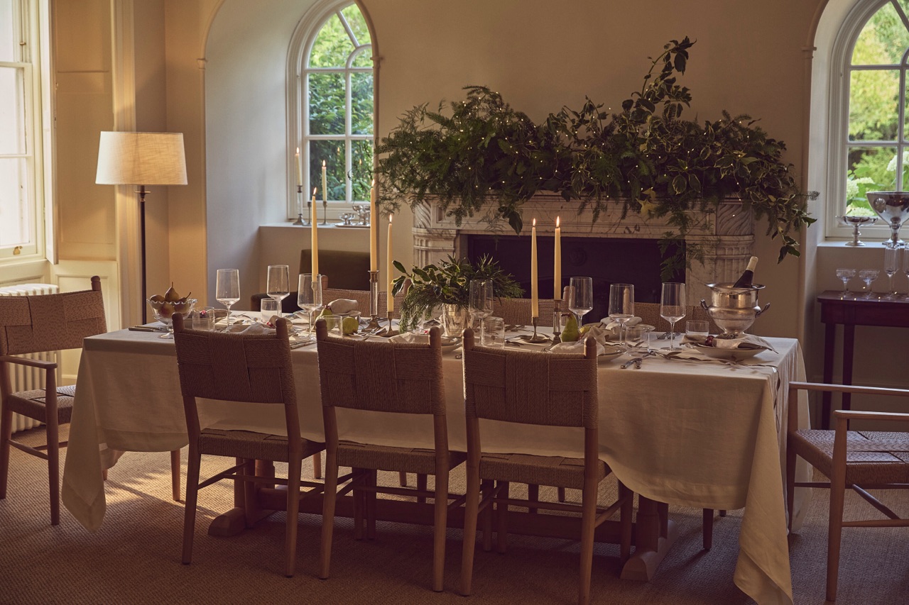 - Nicht jeder mag Weihnachtsdeko, dennoch ist es schön, der Tafel eine dezent feierliche Note zu verleihen. Das gelingt mit viel Grün und ein paar Lichtern. Wichtig sind dazu schlichte Formen und Materialien. Deko, Geschirr und Möbel sind von Neptune.